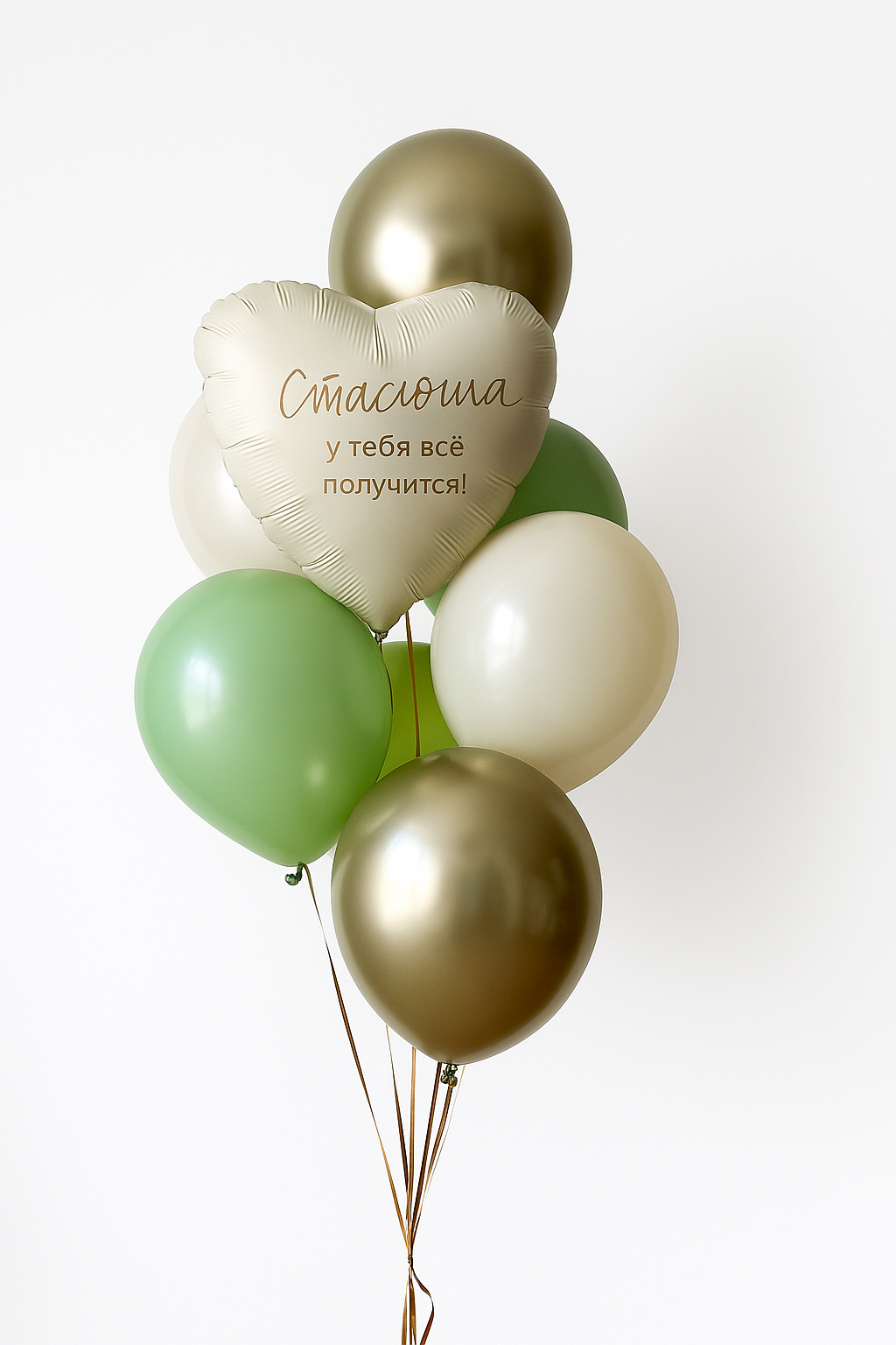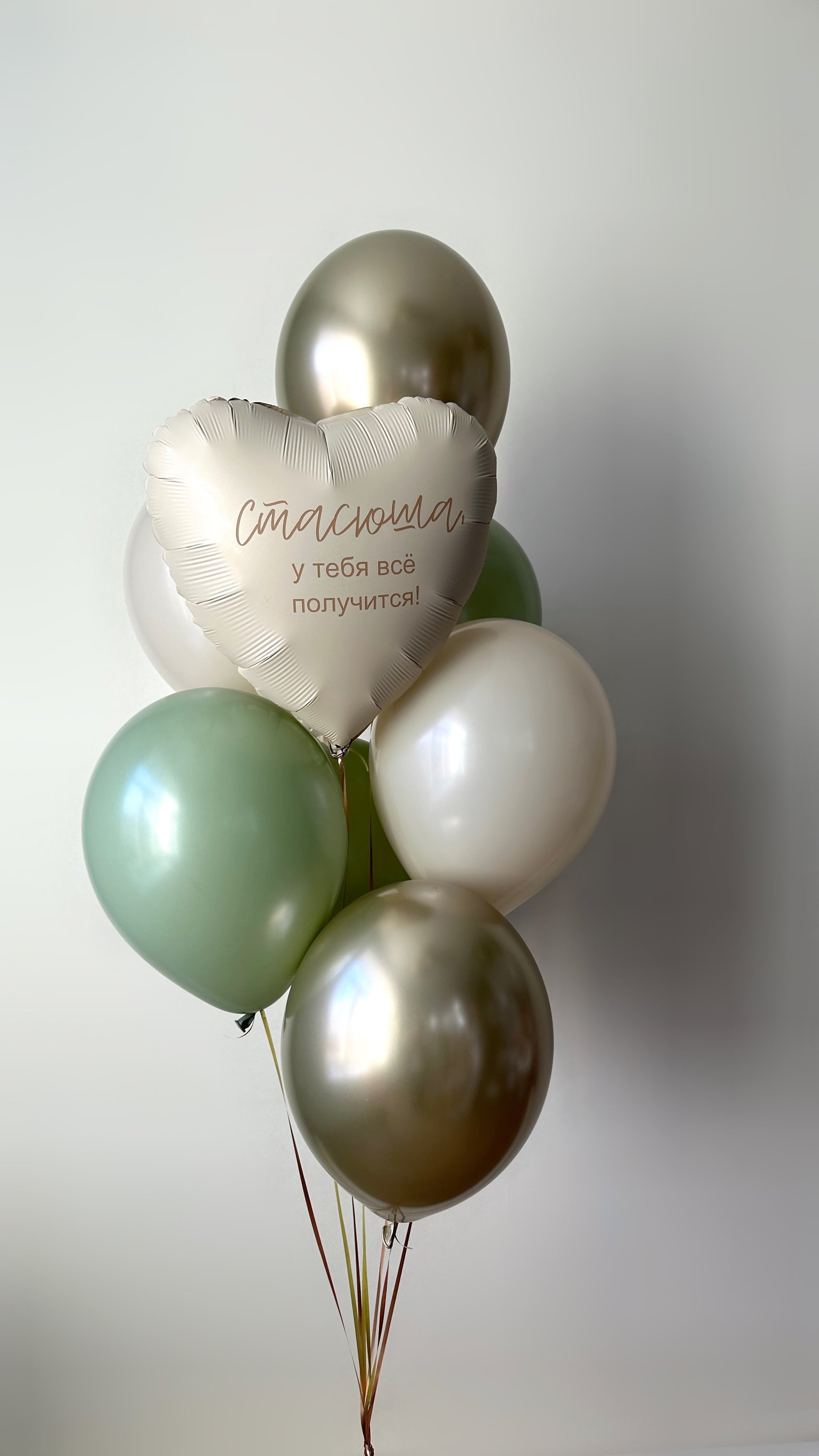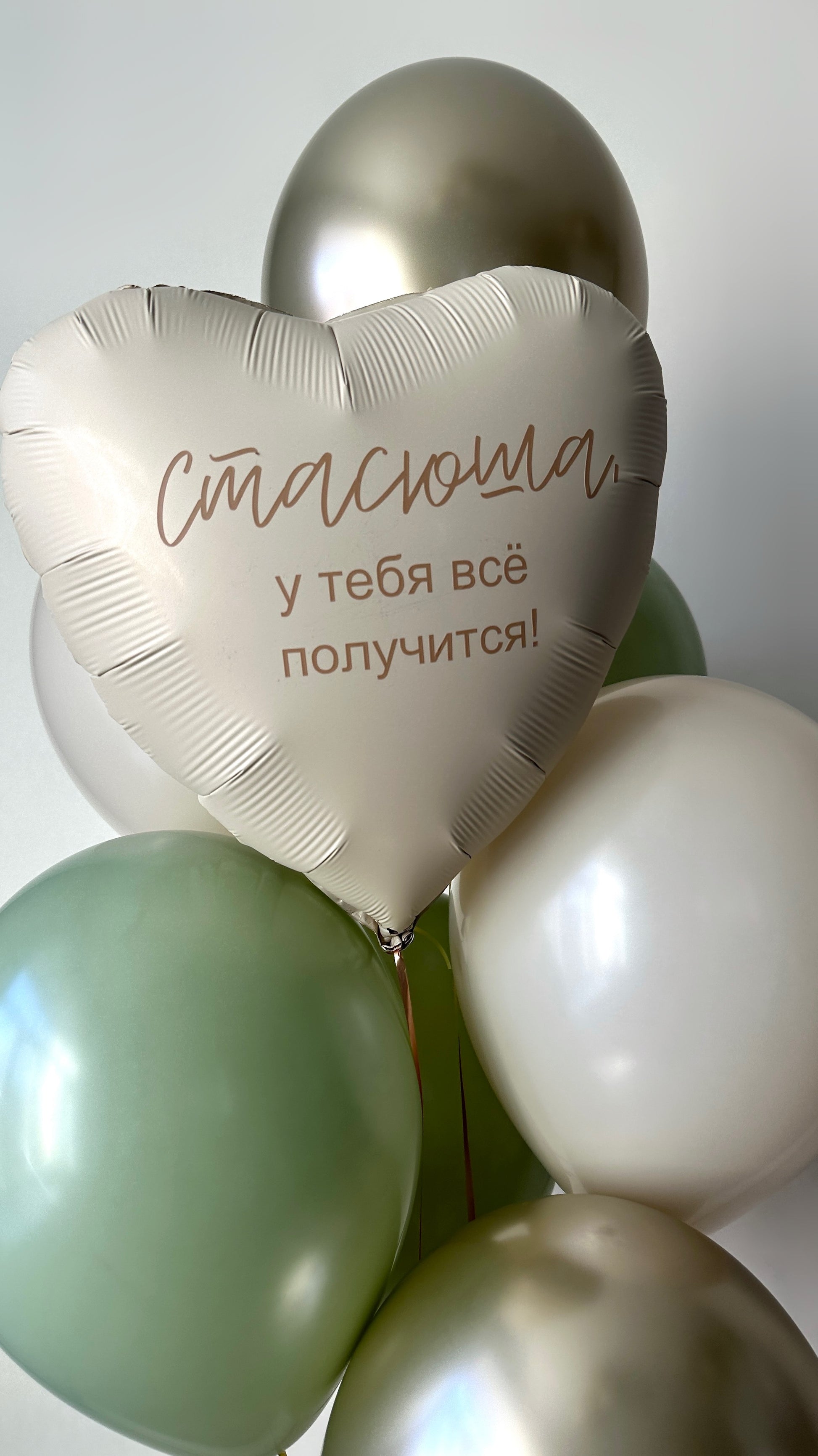 Featuring a heart-shaped foil balloon with the message, surrounded by muted tones of olive green, ivory, and champagne — this bouquet is perfect for encouragement, appreciation, or just to show someone you care.