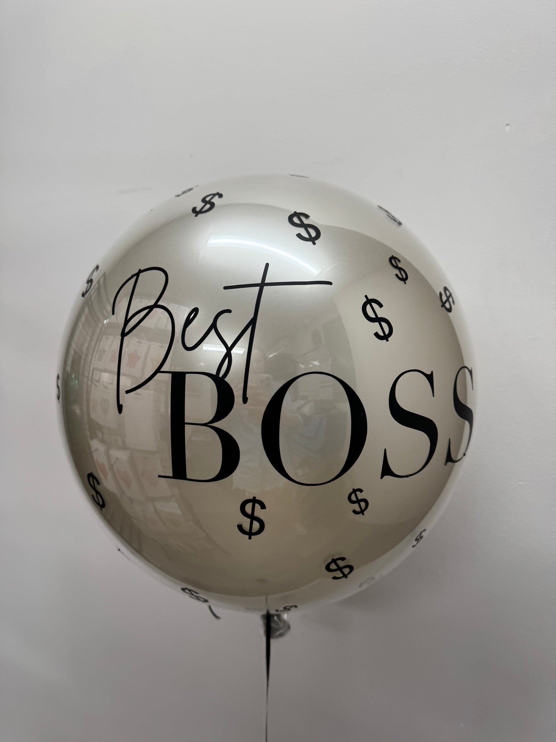 This large, glossy champagne balloon is filled with mini dollar signs and features the message “Best Boss” in bold black print — the perfect gift to show appreciation and admiration. Great for Boss’s Day, birthdays, promotions, or just because.