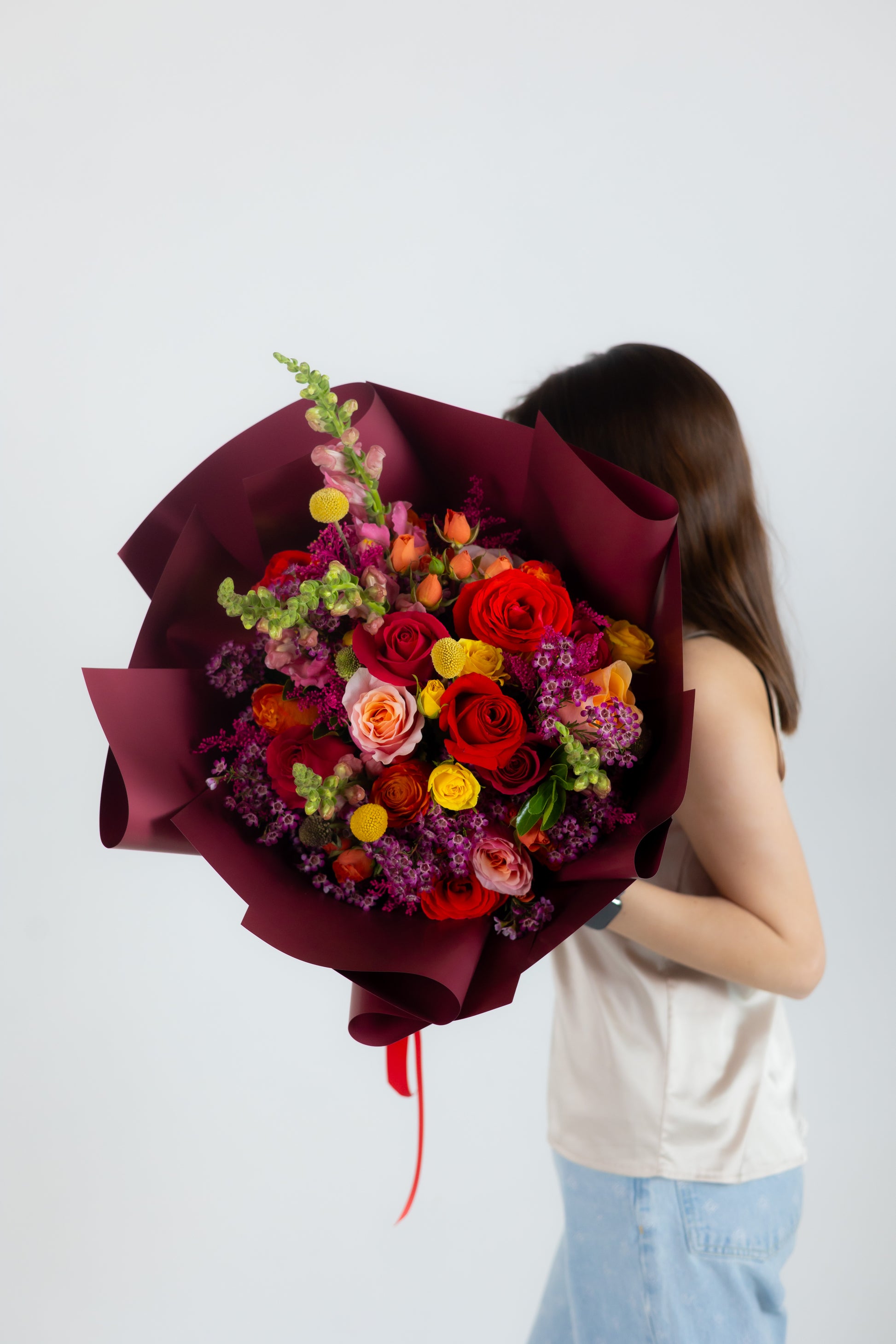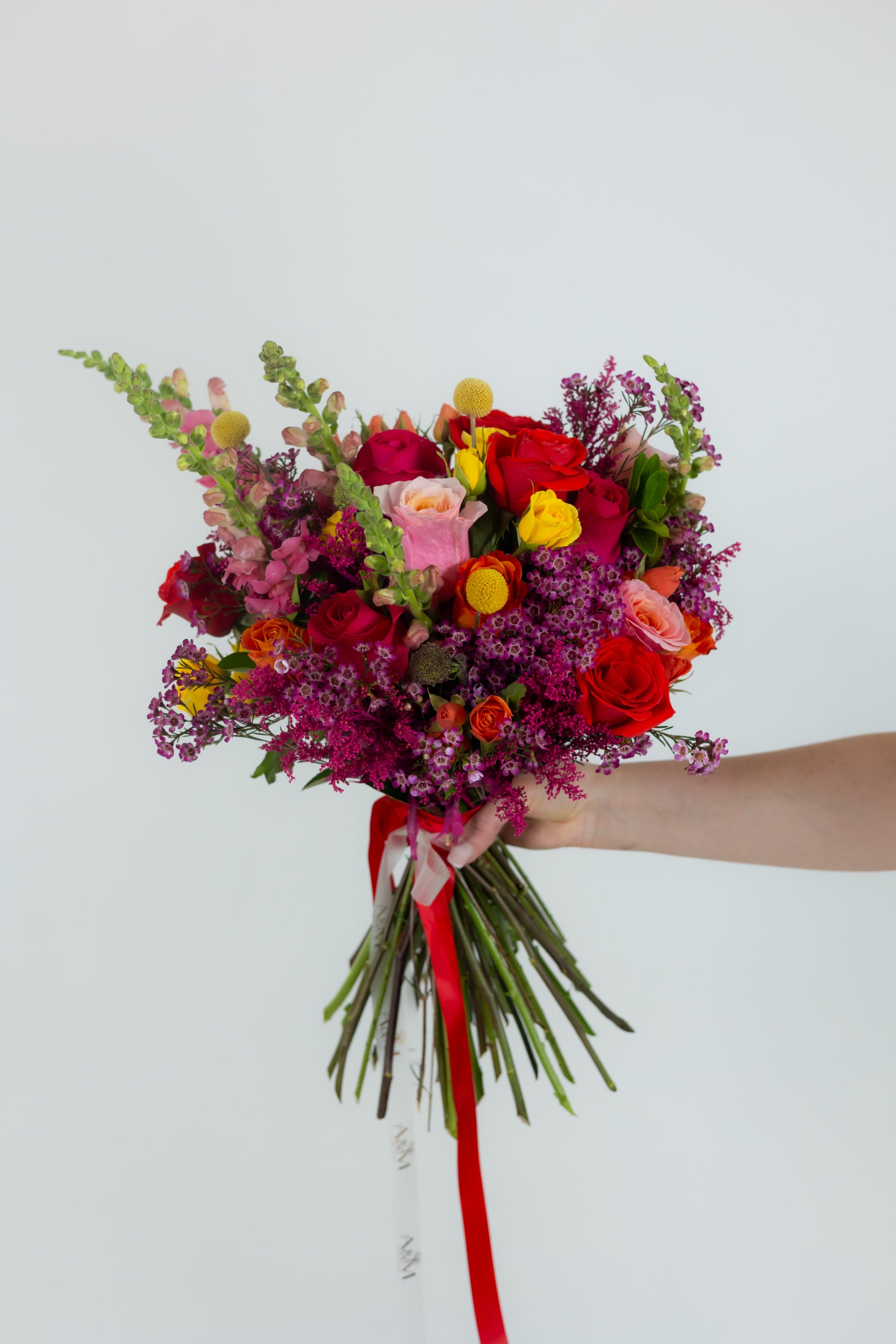 A vibrant celebration of snapdragons, roses, and solidago, highlighted by playful touches of craspedia. Bursting with energy, it’s a true festival of color.