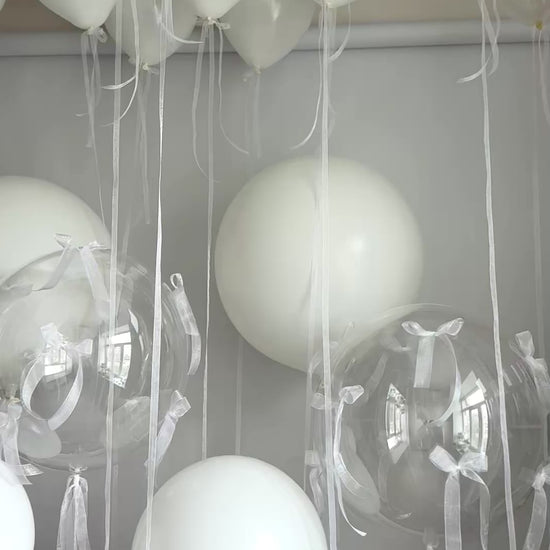 3 Large Clear Bubble balloons with organza bows 24”