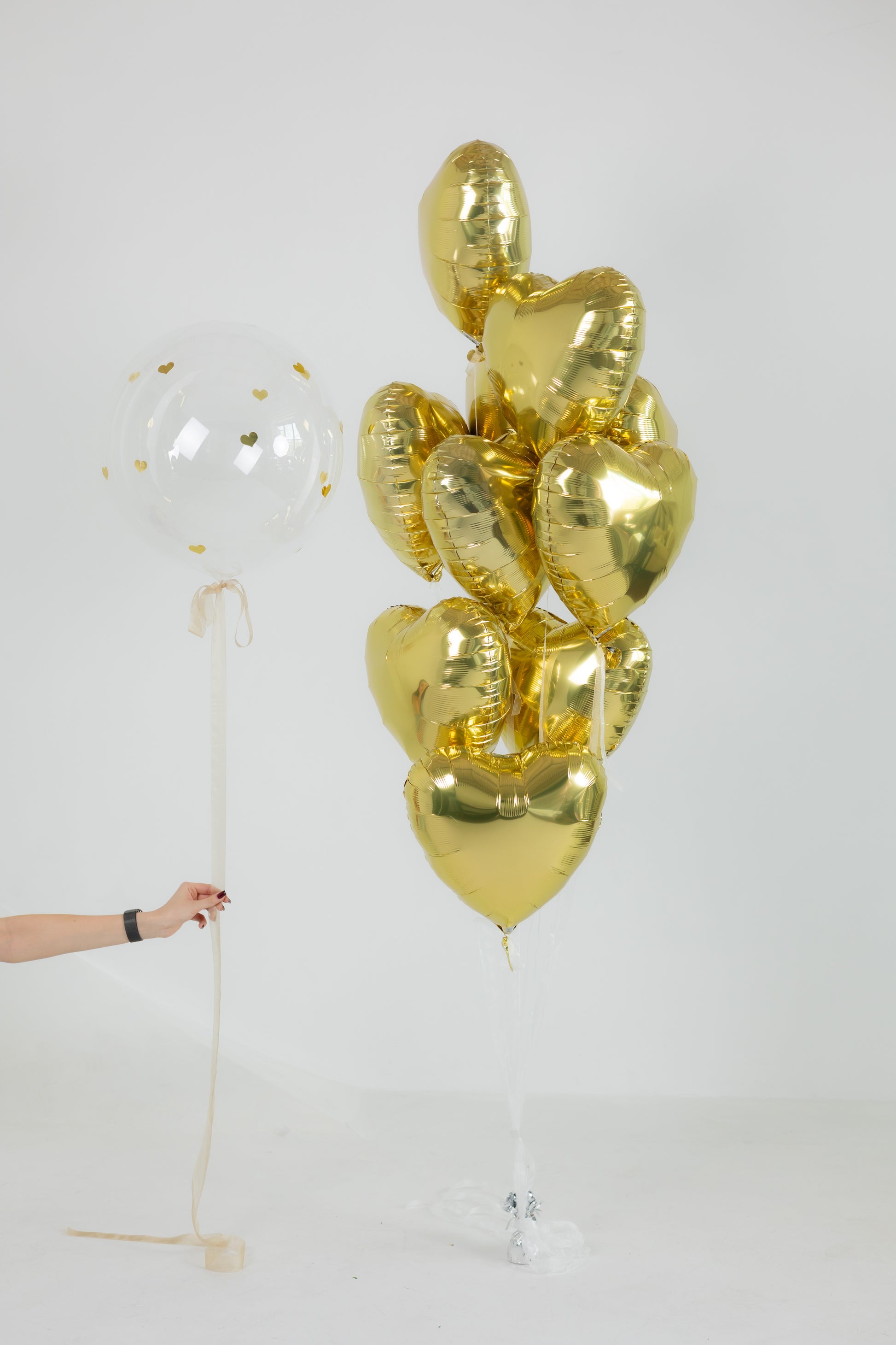 1pc - Bubble Balloon With Gold Heart Decor 18 Inch