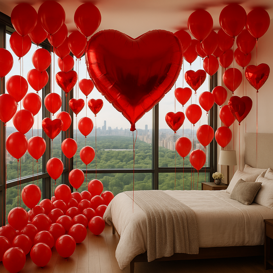Take romance to new heights with this breathtaking balloon setup in a luxury NYC apartment overlooking Central Park. Designed to impress and leave unforgettable memories, this premium decor set includes:
