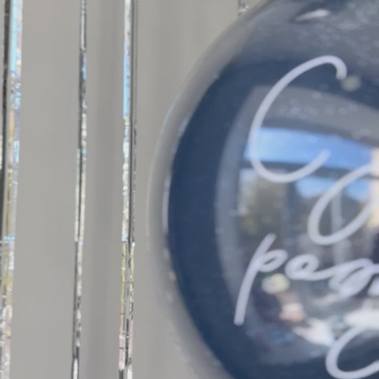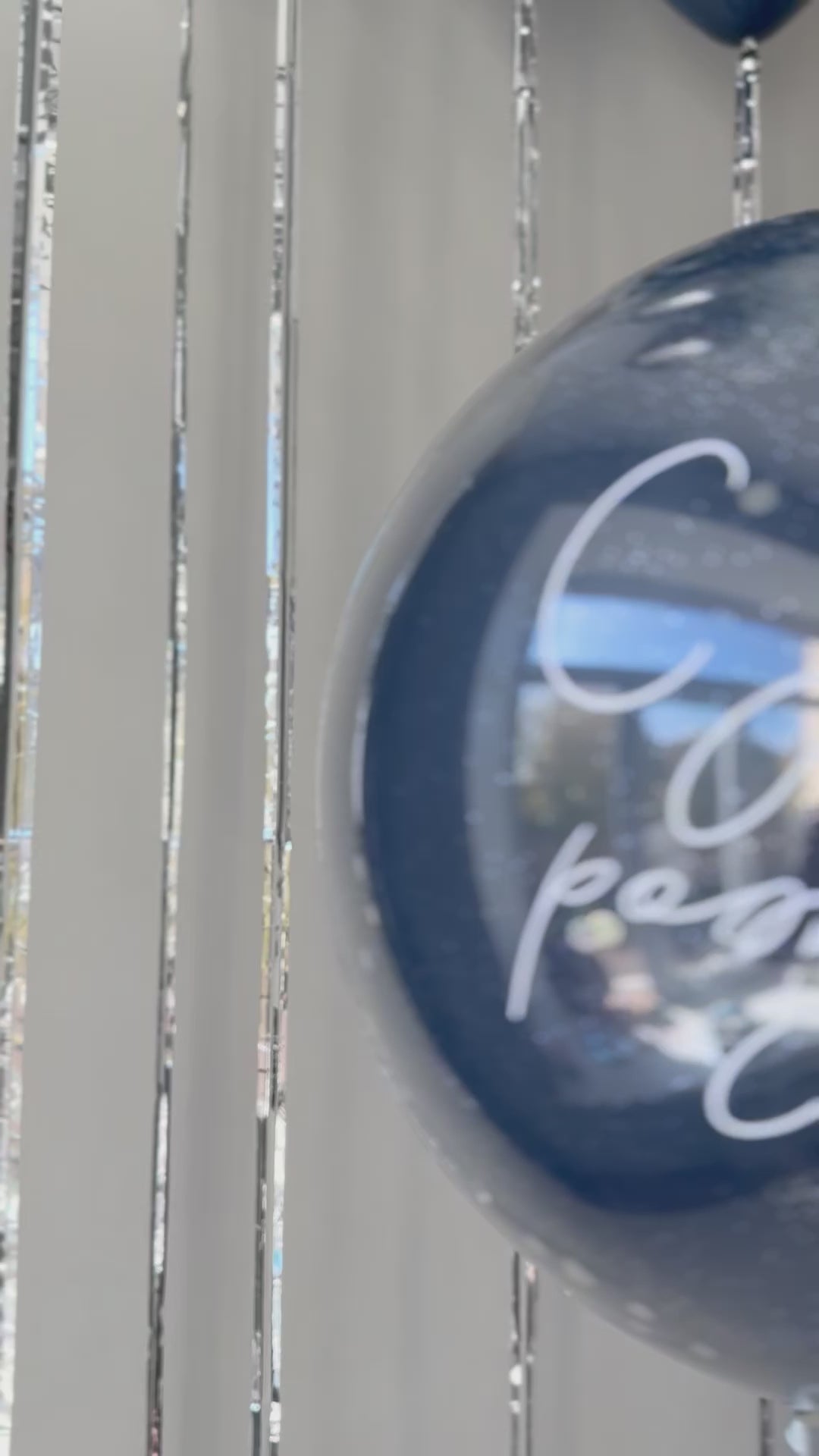 Long silver foil streamers and satin ribbon tail for an upscale finish
