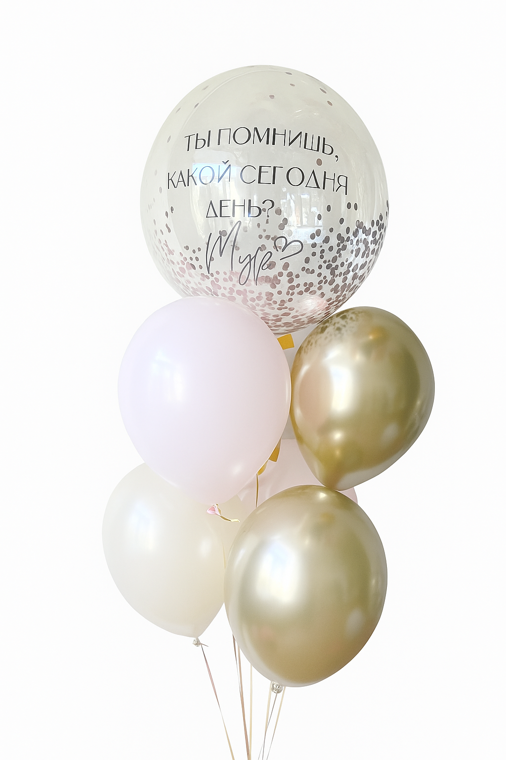 Surprise your loved one with a romantic and elegant balloon arrangement that speaks from the heart. Featuring a personalized transparent confetti balloon with the message “Do you remember what day it is?” and a signature from “Your Husband”, this set is a perfect anniversary, proposal, or just-because gift.