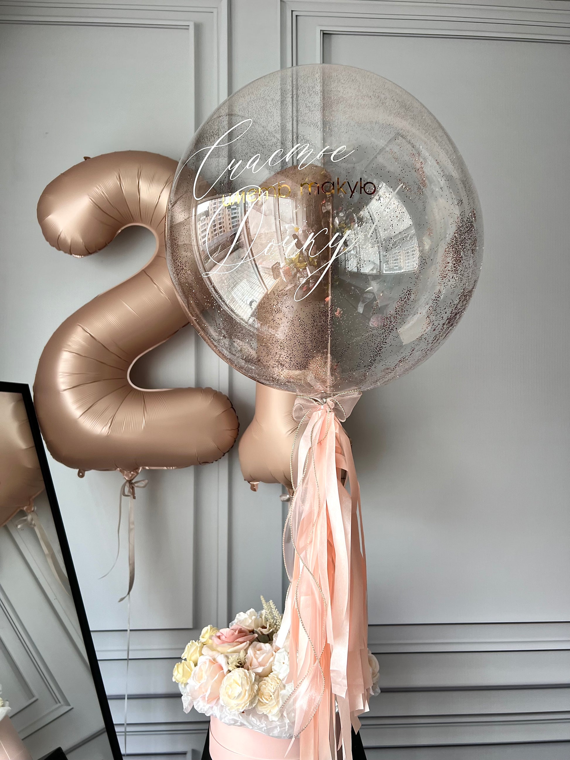 Large Bubble Balloon with glitter and custom sign