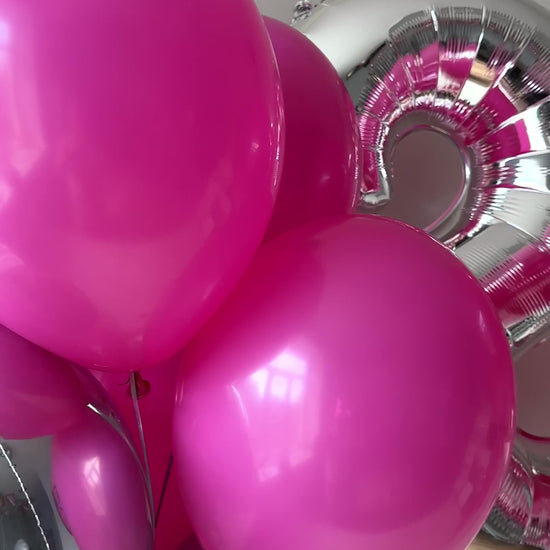 Celebrate in bold and stylish fashion with our Super Girl Birthday Balloon Set. Featuring a large, glossy hot pink balloon personalized with "Happy Birthday Super Girl Ulyana" and surrounded by a chic mix of chrome silver and matching pink balloons, this vibrant arrangement is perfect for the confident, radiant birthday girl.